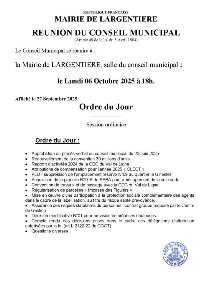 📍 Lieu : La Mairie de Largentière, salle du conseil municipal